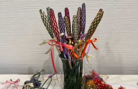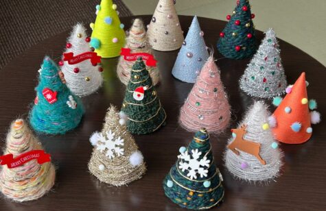 衰えゆく目や手と格闘しながら手作りに頑張っています。作品作りにご協力いただける方も大歓迎です。同窓会事務所までご連絡ください。