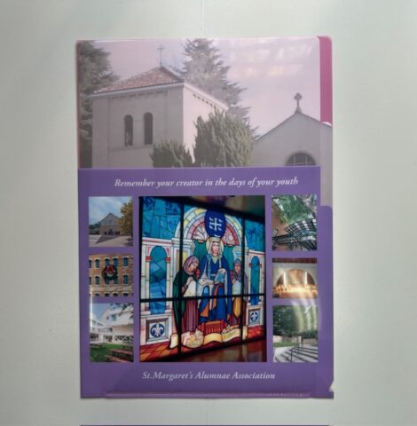 ポケット部分に校章の刺繍、広げるとSt.Margaret’sの刺繍があります。