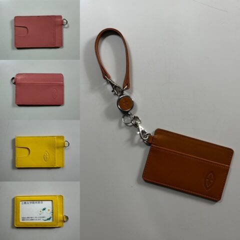 リールストラップ付パスケース 校章入り・革製 3000円