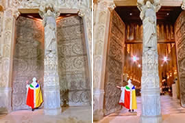 外観は実はまだ工事が続いているのですが、遠くからまた大聖堂の尖塔が見える様になり パリのシンボルが蘇りました。右記の写真は、12月7日夜に各国の要人を招いて開かれたオープニングセレモニーの際に 大司教さまの手で初めて門が開かれた時のシーンです。テレビで生中継放映されました。