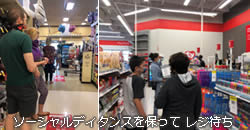 店舗面積に応じて入店客の人数が限られているため、店舗規模や時間帯によって入店待ちで並ぶことがあります。外出規制が発令された直後は入場制限も厳しかった為、規模の小さい日本食スーパーでは入店までに1時間以上並ぶ時期がしばらく続いていました。