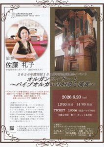 出演: 佐藤礼子 立教女学院オルガニスト(1992年立教女学院短期大学卒業)